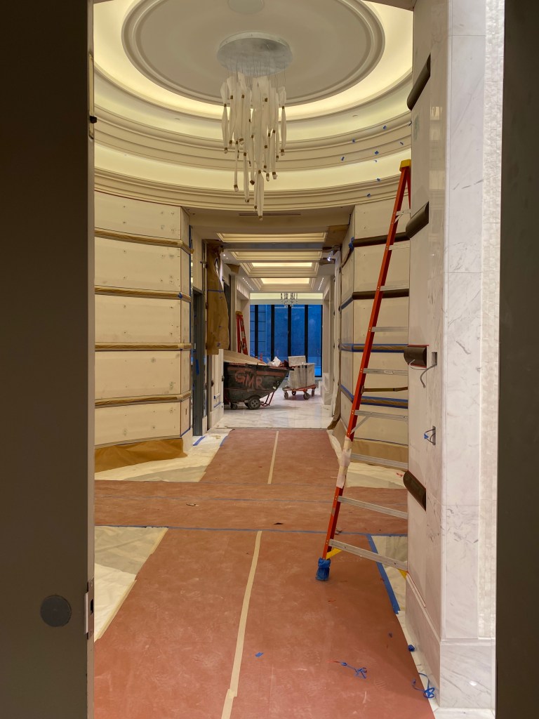 As the door swung open, a figurative record screech. A couple construction workers stopped and stared unsure of how to handle a random guest. My drunk ass emphatically said “Hi!” and praised them for the excellent work they were doing.