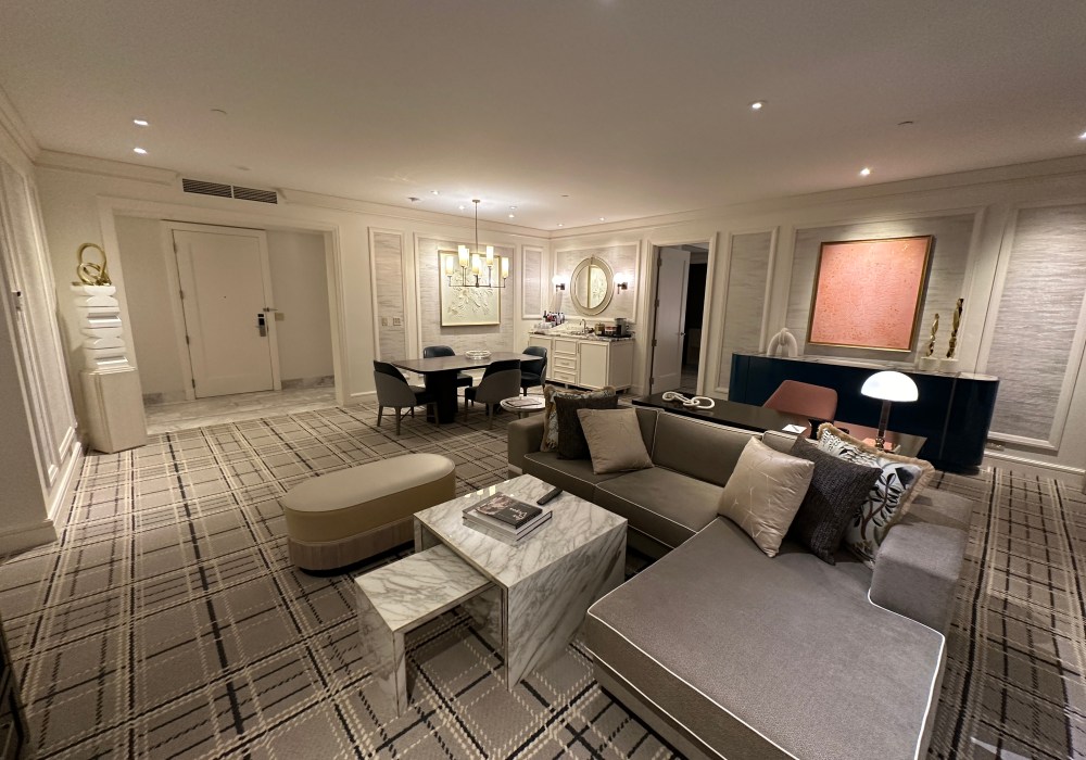 I was one of Crockfords’s very first guests checking in less than two weeks after Resorts World opened. Hiccups were to be expected. Hard hats weren’t. Technical glitches are the norm the first weeks of operation. But ladders in guest room hallways? At times, I felt like a welcomed guest, at others, a nuisance in the way of construction of an entirely unfinished hotel.